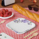 Papier Teller mit einem schönen lila Blumendesign.