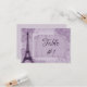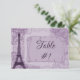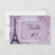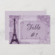 Zahlen Sie Ihre Empfang-Tische mit einer Lila Pariser Empfang-Tischkarte. Die Tafelkartengestaltung umfasst den Eiffelturm, eine Schriftrolle, in der Sie die Informationen Ihres Brautparty mit Damast- und Postschmuckstücken in Briefmarke näher erläutern können. Mit diesem Design sind auch weitere Hochzeitswaren erhältlich. Brauchen Sie Hilfe bei der Anpassung? Bitte kontaktieren Sie mich, und ich werde den Wortlaut und die Details ausarbeiten, um dieses Design zu Ihrer Zufriedenheit zu gestalten.