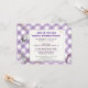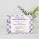 Erleben Sie den Spaß an einem Picknick oder einer GRILLEN im Freien mit dieser lustigen Party Einladung. Auf einer Papierserviette befindet sich ein individueller Text gegen ein lila Gingham-Tischdecken. Die Mahlzeit ist vorbei, und die Restmengen bleiben inklusive der Getränkeringe auf dem Tisch und der Serviette. Darüber hinaus besucht der Feind der Picknick, Ameisen, einen Besuch. Das Gingham-Muster wird auf der Rückseite wiederholt, und mehr Ameisen sind zu Sackgassen gekommen. Erhältlich in alternativen Farben mit passenden Produkten.