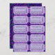 Platzieren Sie ein paar lila Party-Lose in Ihre Einladungen, die Gäste Liebe sie. Sie müssen einfach ihren Namen auf das Ticket schreiben und es bei der Veranstaltung abgeben. Keine Notwendigkeit für doppelte Tickets. Die Nummer auf dem Ticket ist das Datum der Veranstaltung, sodass sie bis zur Ticketeingabe eine kleine Erinnerung haben. Vorräte, die Sie brauchen, sind Scheren, um zwischen den Tickets zu schneiden (es sei denn, Sie wollen ihnen das ganze Blatt geben.) Ich machte den Hintergrund auf der Vorder- und Rückseite ein schönes Aussehen Glitzer, sodass Sie sich keine Sorgen machen müssen, die geschossenen Ecken zu schneiden. Die Eintrittskarten sehen genauso gut aus wie Rechtecke. Ich hoffe, Sie haben eine tolle Veranstaltung! Amelia Carrie