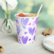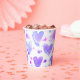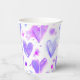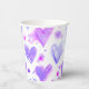Ein hübsches Muster von gemalten Herzen, handbemalt in Aquarellfarben in lila Farbtönen, in feuchter Technik. Hier auf Party-Tassen auf Papier für den Valentinstag oder zu jedem Anlass. Ändern Sie die Mustergröße zu Ihrer Präferenz und personalisieren Sie sie mit jedem Text. Das ist ein hübscher Ausdruck von Liebe!