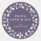 Lila Peace Liebe + Joy Holly Wreath Runder Aufkleber
