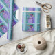 Verpackung stellt sich in diesem perfekten lila Penguinpapier dar.