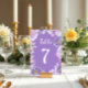 Führe deinen Gästen einen Pop spielerischer Eleganz! Diese Tischnummer Cards blühen mit lila Pfannenbäumen und einem fröhlichen Sommertuch, die alle in einer Retro-inspirierten Typografie verhüllt sind, die jede Zahl besonders schön erscheinen lässt. Sie sind so konzipiert, dass sie sich auf Ihrem Tisch abheben und gleichzeitig Ihr Thema wunderschön zusammenbinden können. Sie sind die perfekte Mischung aus Form, Funktion und blumengeschmücktem Flair.