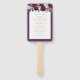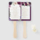 Burgundy und lila Aquarellblumen mit goldenen Akzenten schmücken diese personalisierten Handfans, das perfekte romantische Programm für Ihre Hochzeit.