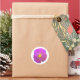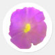 Dieses hübsche Rundaufkleber-Blatt zeigt ein Foto einer Petunia-Blume, die manipuliert wurde, um die Mitte der Blume hellgelb zu machen. Die Erholung der Blume ist ein hübscher Schatten von lila.