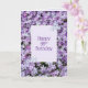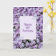 Lila Phlox blüht in einem Sommergarten mit Lavendelrahmen und Happy 96. Geburtstagstext.