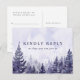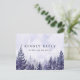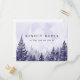 Eine elegante, lila RSVP-Karte mit Aquarellkiefernwälder mit schicker Typografie. Auf der Rückseite finden Sie Ihre Details und eine lustige Gesangsanfrage. Entwickelt von Thisisnotme©