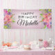 Farbenfrohe lila und rosa Aquarell-Wildblume "Happy Geburtstag" Banner für Mädchen oder Frauen. Personalisiert mit dem Namen des Ehrengast. Kontaktieren Sie mich, um Hilfe bei der Anpassung zu erhalten, oder um die Abstimmung oder Koordination von Zazzle Produkten für Ihr Party anzufordern.