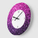 Lila Pink Ombre Glitzer Glitzern mit Zahlen Große Wanduhr