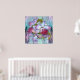 Aquarellfarbene lila Orchideen Set auf Vorhänge von Lavendel, Aqua und Marine mit Minzgrün und Lavendel Glitzer fotografiert Glas.