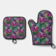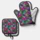 Lila Pink Peacock Floral Ofenhandschuh & Topflappen-Set