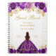 Dieses elegante und glamouröse Gästebuch von Quinceañera besticht durch eine wunderschöne Prinzessin mit dunklem Haar in einem Tiara und einem lila Ballkleid. Der Text kombiniert handgeschriebene Skripte mit modernen serifenlosen Schriftart für ein elegantes und raffiniertes Aussehen. Die Blumenarrangements und die Goldkonfetti bilden die perfekte Mischung aus rustikal und schick. Grafiken von www.etsy.com/uk/shop/SunflowerDayLove