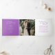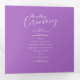 Ein sechsseitiges lila Hochzeitsneuprogramm für moderne Kunst. Bearbeiten Sie dieses Hochzeitsprogramm mit Ihren eigenen Namen, Terminen, Einführung, Zeremoniell, Begleitern von Hochzeitsfeiern, Foto Ihrer ersten Veranstaltung oder beschränkten Hochzeit, und Ihr Dank. Originale Kunst und Design von www.mylittleedenweddings.com