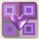 Ein hübscher lila Hintergrund von Quadraten mit einem lila Puffherz, der die Mitte dieser Untersetzer betont.