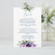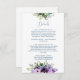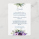 Lila und grüne Blütendesign-Einschließkarte mit marineblau-blauem Text auf einem knalligen, weißen Hintergrund. Diese schicke Karte verbindet zeitlose Eleganz mit modernem Komfort, denn sie enthält einen diskreten QR-Code, der Ihnen den einfachen Zugang zu weiteren Hochzeitsdetails ermöglicht. Das lebendige Blumenmotiv verleiht Ihren Einladungen eine Touch von Eleganz und macht diese Umzäunungskarte zur perfekten Mischung aus Tradition und Innovation für Ihren besonderen Tag.