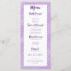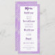 Diese elegante Menükarte hat einen lila quatrefoil Hintergrund und lila Skripttitel auf einem weißen dekorativen Kasten. Vervollkommnen Sie für das Lassen Ihrer Gäste wissen, was sie essen werden!