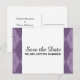 Klassische und elegante Raute Save the Date Postcard mit lila Raute. Einfach an Ihre Hochzeitsdetails anpassen. Klicken Sie für weitere Anpassungsoptionen auf die Schaltfläche Anpassen.