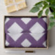 Ein gewagtes, geometrisches Muster großer und kleiner weißer Diamanten auf einem lila Hintergrund. Das lila bildet ein Gitter, das die weißen Rautenformen trennt. Digitales Bild. Copyright ©Claire E. Skinner, Alle Rechte vorbehalten.
