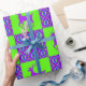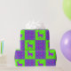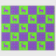 Lila Rentiere auf Limonem Schachbrett mit lila und Limonen geometrischen Mustern.
