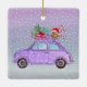 Lila Retro Fiat 500 mit Weihnachtsgeschenken Keramikornament