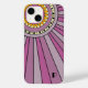 Rosa und lila Retro Sonnenstrahlen Custom Monogramm Brief Case-Mate iPhone 14 Fall. Entworfen mit den Foto Linsen in der Mitte der Sonne Design. Schützen Sie Ihren Alltag mit diesem farbenfrohen Handy-Gehäuse in Rosa und lila Rochen- und Gelb-Details. Gönnen Sie sich einen lustigen und fröhlichen Eindruck und sind leicht zu erkennen. Fügen Sie Ihren Monogramm-Brief in diesem Retro-Vintagen Schriftart für eine persönliche Touch. Erhältlich in mehr Modellen, Größen und Farbkombinationen - wählen Sie Ihre Passform aus. Warum nicht auch dieses Design auf ein anderes Produkt übertragen, das Sie für eine Übereinstimmung im Design? Ein nachdenkliches Geschenk mit einem persönlichen Monogramm-Brief. Ihr Handy ist etwas Wertvolles, das Sie oft jeden Tag mitbringen, schützen Sie es mit einer lustigen und persönlichen Touch.