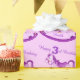Geburtstagsverpackungspapier lila Rockpferdedesign auf einem lila Hintergrund. Personalisieren Sie dieses dritte Geburtstagspapier mit Ihrem eigenen Namen. Aktuell liest Happy 3. Geburtstag Glaube. Ideal für die Verpackung eines besonderen Geburtstagsgeschenks. Einzigartig in Aquarellfarbe bemalt und von Sarah Trett entworfen.