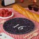 lila rosa Glitzer-Muster in schwarzem Hintergrund mit Textvorlage zum 16. Geburtstag, die Sie bearbeiten können!