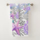 Lila rosa Aquamarine und weiße Muscheln Badhandtuch Set
