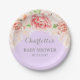 Individuell gestaltbare Baby Dusche Party Teller in hellen Lavendel lila mit Vintagen rot-rosa Aquarell-Blume Muster.