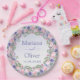 Periwinkle lila, rosa Aquarell Blumenzettel Teller für Hochzeitsfeiern,
