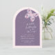 Ein kleiner Schmetterling ist unterwegs! Moderne Arch-Shaped Lila rosa Bläsernschmetterling Kinderdusche Einladung. Der Blumenschmetterling ist in einer Vielzahl von staubigen Püppchen, Pink und Blues gestaltet. Der Hintergrund ist staubig lila mit einem subtilen rosa Gittermuster um den Rand herum. Alle Farben (mit Ausnahme des Schmetterlings selbst) können geändert werden und alle anderen Elemente können verschoben, gelöscht oder neu gefärbt werden, sodass Sie eine einzigartige Einladung für Sie erstellen können! © Kimbellished, LLC