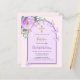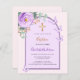 Rosa Hintergrundfarbe mit einem Bogen. Lila, violette Blume, Rose, grüne Eukalyptuspflanzen und Schmetterlinge. Personalisieren und fügen Sie einen Namen und Details. Zurück: Rosa Hintergrundfarbe rot. 1 Blatt = 1 Einladung mit Druckkante bis Kante.