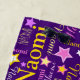 Niedliche ursprünglich entworfene Textname personalisiert Handtuch. Dieses helle lila, rosa, weiß und gelb druckende Handtuch mit grafischen Sternen kann auch mit Ihrem eigenen kurzen Namen, liest derzeit Naomi. Andere Namen sind verfügbar oder kontaktieren Sie mich für Namensanfragen. Originale Kunst und Design von Sarah Trett für www.mylittleeden.com
