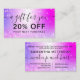 Makeup Haare lila rosa Glitzer ombre Metallic Folie beruflich Discount-Karte mit eleganten modernen funkelnd ombre lila Ober Rosa Glitzer Konfetti und ombre Gradienten mit rosa metallische Textur und eine moderne Typografie, fügen Sie Ihre sozialen Medien.
