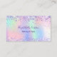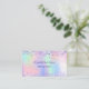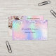 Ein trendiger holografischer Hintergrund in rosa, lila, mint grün. Dekoriert mit lila Konfetti. Personalisieren Sie Ihren Namen, Titel, Foto, Telefonnummer, E-Mail, Website-Adresse, qr-Code auf Ihrer Website. Lila Buchstaben.