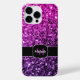 Personalisieren Sie Imitate funkelnd mädchenhafte iPhone Gehäuse mit Ihrem Initial und Namen. Anspruchsvoller, blendender, schimmernder, lebendiger, üppiger, lebhafter Glamour tief in Rosa lila Omelgradität. Schöne glamouröse dunkelrosa glänzende Glitzer Glitzern. Foto von rosa lila Glitzern, nicht wirklich Glitzer!