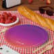 Lila, rosa und orangefarbene Farbvarianten Pappteller