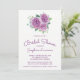 Diese Brautduscheinladungen zeichnen sich durch ein lila Design von Rose und Blätter aus. Die Rückseite der Einladungen haben eine Single-Rose. Diese Einladungen sind Teil einer Sammlung, die eine vollständige Palette von passenden Hochzeitswaren wie Antwortkarten, Informationskarten, Adressetiketten, Aufkleber, Programme und vieles mehr umfasst. Bitte besuchen Sie die Sammlungs-Seiten in unserem Geschäft, um die komplette Palette von Produkten, die Sie personalisieren können zu sehen.