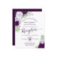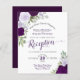 Diese preiswerten und preisgünstigen Einladungen sind für Gäste gedacht, die nur zum Empfang eingeladen werden, und nicht für die Ehezeremonie. Das elegante Design besticht durch handbemalte Aquarellfarben in lila, Lavendel- und Pflaumentönen mit einer Vielzahl an Eukalyptus-Blätter und Grünpflanzen. Die Typografie zeichnet sich durch extravagante Skriptkalligraphie aus, und die Rückseite ist eine tiefmarmorierte bordeauxfarbene. Der perfekte Weg, um Ihre Hochzeit zu feiern, ohne ein Vermögen für die Einladungen zu verbringen.