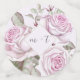 Hübsche Pastel Lila Aquarellfarben Rose Blumenkonfetti mit den Monogrammen von Braut und Groom, Namen und Hochzeitstag, hübsche Liebe und zwei Fotos.