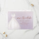 Elegantes Brautparty speichern Sie die Dattelkarten mit Aquarellfarben weiße Hochzeitskleid mit funkelnden Imitaten Rose Gold Glitzer Save the Date Skript auf weiche lila Hintergrund.