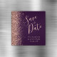 Der links Rand dieses eleganten Save the Date Magneten weist eine Rose Gold Imitat Glitzer Rand. Der anpassbare Text kombiniert Rose-Rosa-Handschrift-Skript mit Serif-Schriftart auf einem lila Hintergrund.