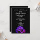 Eine elegante Einladung zum Geburtstag. Kann auch für andere Veranstaltungen angepasst werden. Das untere Ende der Einladung zeigt ein schönes Foto einer lila, blauen und rosa Rose auf einem schwarzen Hintergrund, beleuchtet von einem Single-Spotlight, das eine spektakuläre Beleuchtung schafft, die wirklich die Schönheit dieser Blume zeigt, die von zarten kleinen Wassertröpfchen bedeckt ist.