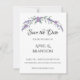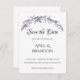 Ein elegantes und Vintages Design mit lila Rose, Eukalyptus und Lavendel in romantischer Wasserfarbe.