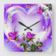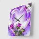 Lila Rose und Herz Quadratische Wanduhr