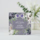 Ein schöner quadratischer Rahmen ist mit zarten Aquarellfarben-Rose in hellen Weiß- und lila-Blau-Farbtönen umgeben, die einen Rahmen um weiße Vorlagen und Imitate bilden, die Glitzer-Sequins und Juwelenstrände funkeln. Die Ecken haben ein zartes, weiches grünes Blattwerk und ein tiefer lila und weißer Satin-Bogen mit einem Diamant-Edelstein-Inlay erscheint am oberen Rand. Dieses elegante und schicke, französisch-schicke Design ist ideal für ein Brautparty. Geburtstagsfeier oder besondere Hochzeitsfeier. Personalisieren Sie einfach die Formulierung, um Ihren besondere Anlass oder Ihre Veranstaltung zu Anzug und ändern Sie den staubigen lila Hintergrund zu jedem Ihrer Wahl.