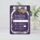 Maßgeschneiderte rustikale lila Hochzeitskarten mit einem Maurerkrug mit zwei Höhlenherzen vor einem Stallholzhintergrund. Zwei Höhepunkte auf einem lila rustikalen Holzboden hinten. Personalisieren Sie diese Karten einfach online mit Ihren Hochzeitsdetails. Matching Artikel verfügbar, um diese niedlichen rustikalen lila Hochzeitskarten zu ergänzen.