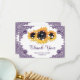 Lila Rustikal-Chic-Spitzen-Sonnenblumen-Hochzeit Dankeskarte
