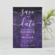 Diese elegante lila rustikale Scheunenholz boho Hochzeit rett-the-date-Karte kann mit Ihren Informationen in chic Typografie personalisiert werden. Entwickelt von Thisisnotme©